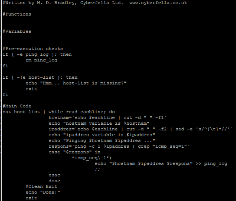 The following shell script automates a ping test across a list of hosts. The format of the expected host-list file is…